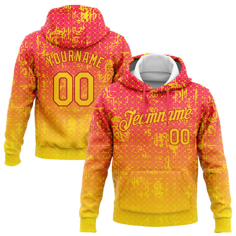 Custom Stitched Red Gold 3D Pattern Design Gradient Abstract Grid Line Sports Pullover Sweatshirt Hoodie
