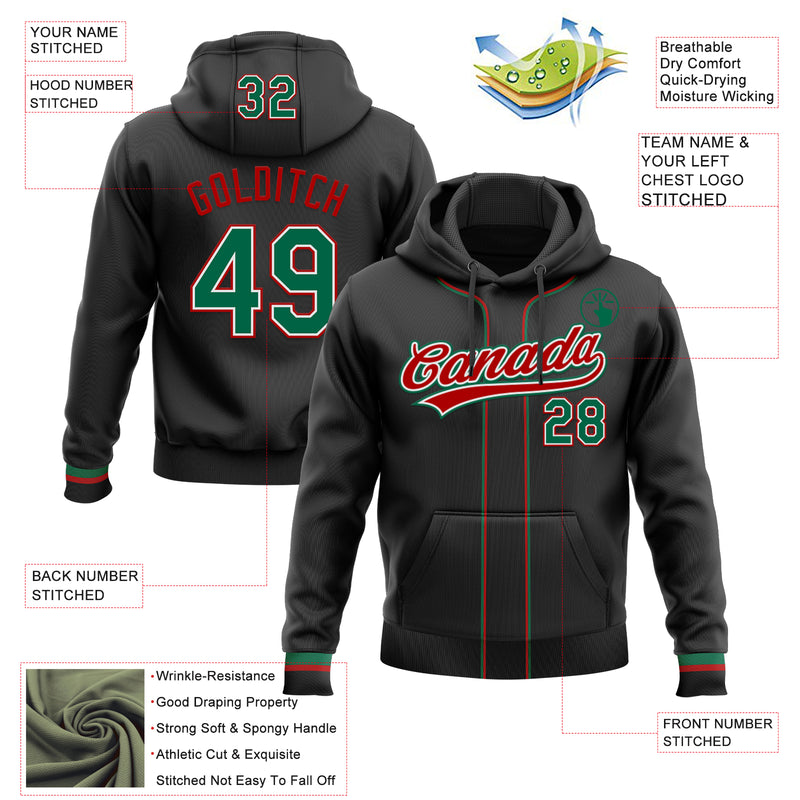 Custom Stitched Black Kelly Green Red-White Baseball Pullover Sweatshirt Hoodie