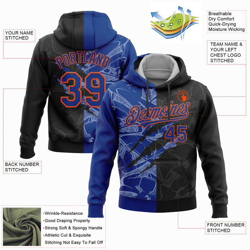 Custom Stitched Graffiti Pattern Black Royal-Orange 3D Scratch Sports Pullover Sweatshirt Hoodie