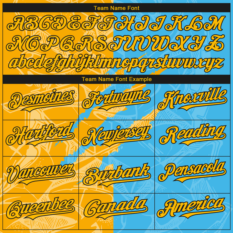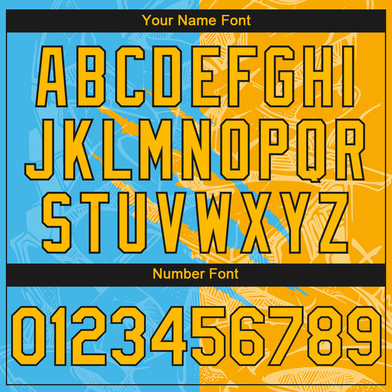 Custom Stitched Graffiti Pattern Gold Sky Blue-Black 3D Scratch Sports Pullover Sweatshirt Hoodie