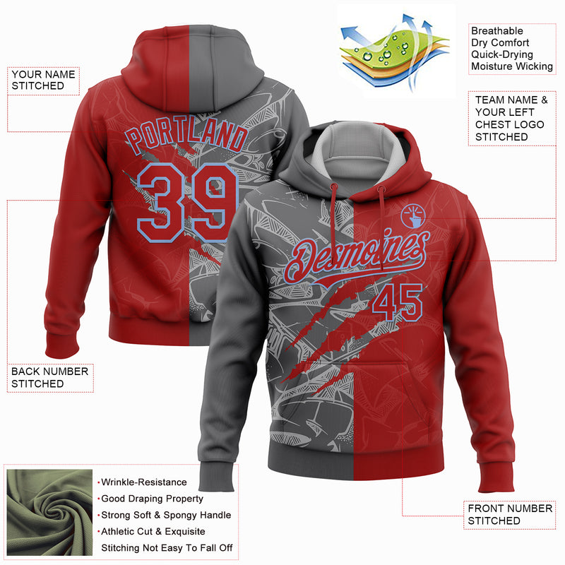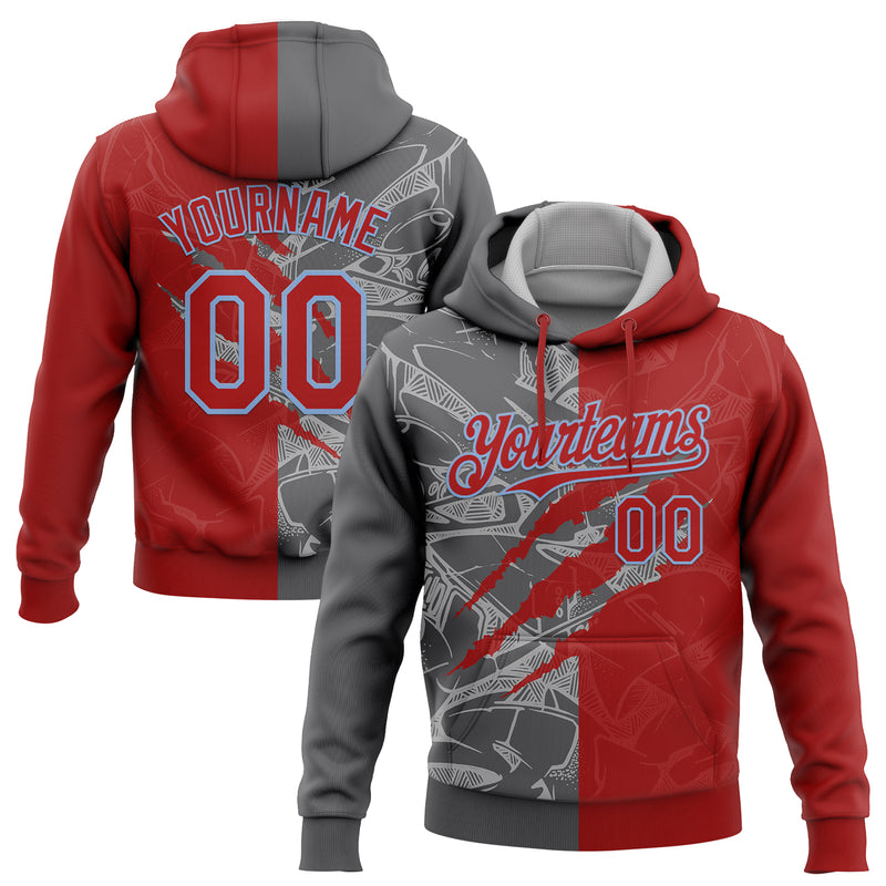 Custom Stitched Graffiti Pattern Red Steel Gray-Light Blue 3D Scratch Sports Pullover Sweatshirt Hoodie