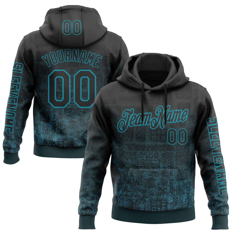 Custom Black Teal 3D Pattern Design Ethnic Tribal Sportswear Pullover Sweatshirt Hoodie
