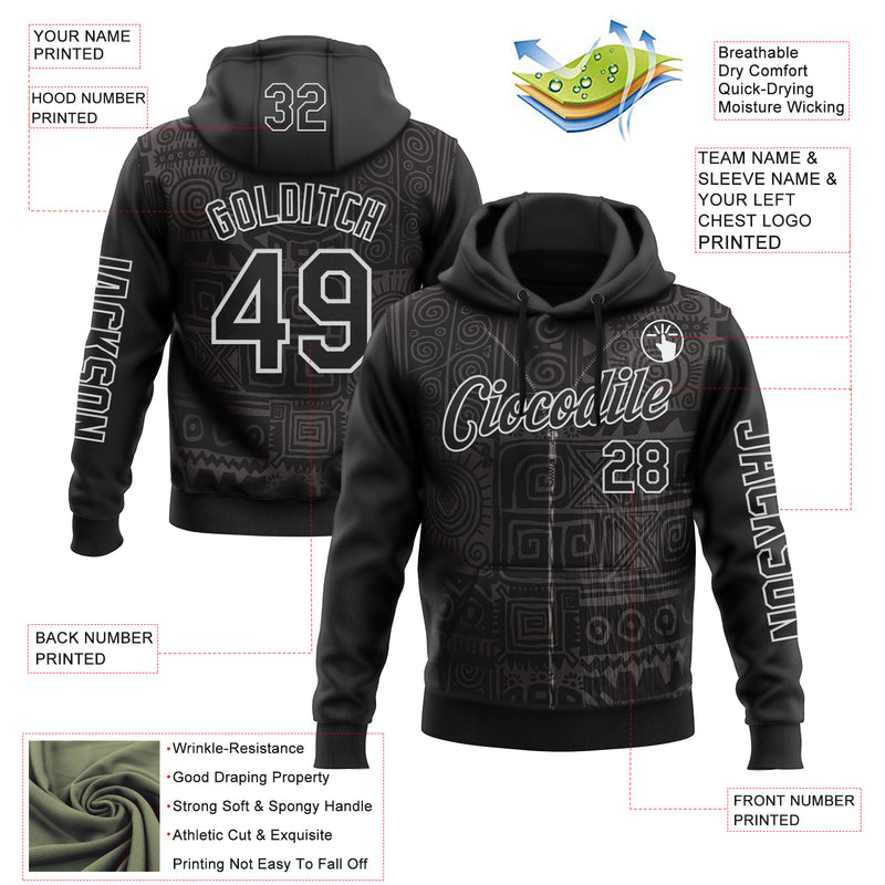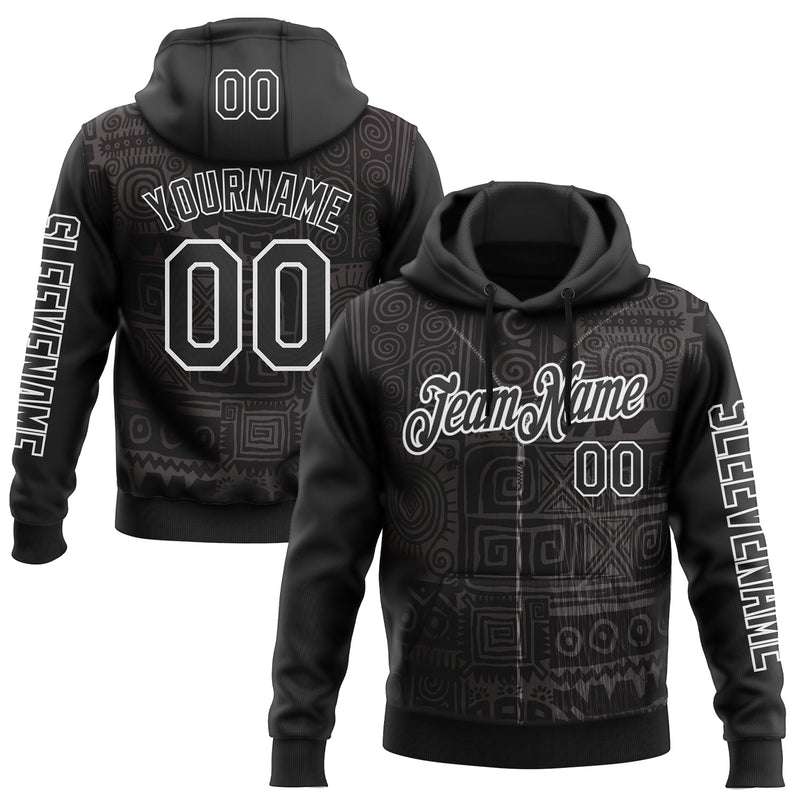 Custom Black White 3D Pattern Design Ethnic Tribal Sportswear Pullover Sweatshirt Hoodie