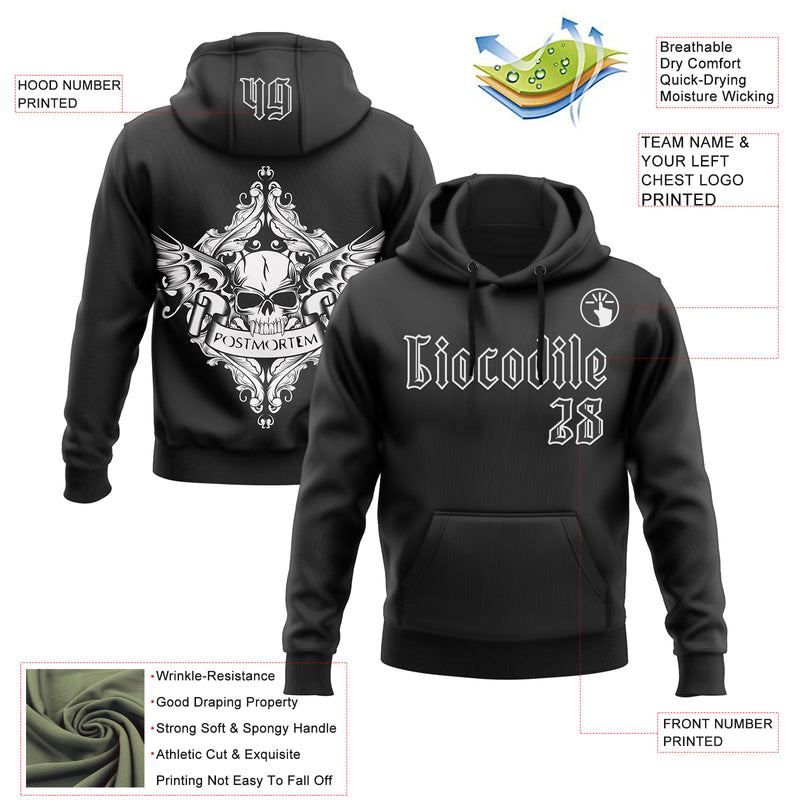 Custom Black White 3D Skull Gothic Postmortem Vintage Sports Pullover Sweatshirt Hoodie