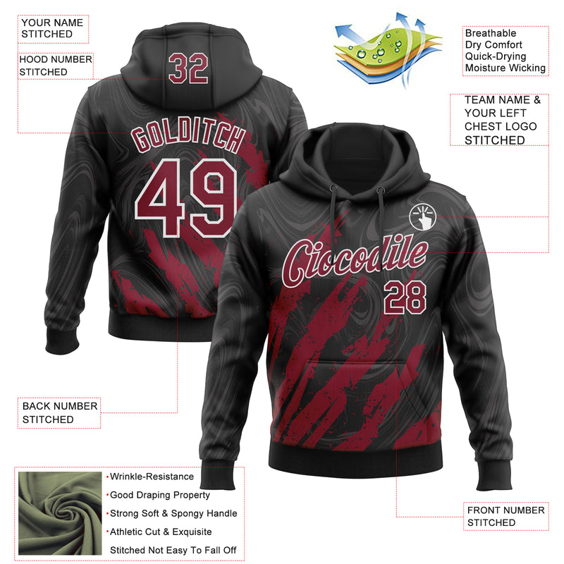 Custom Stitched Black Crimson-White Splash Sports Pullover Sweatshirt Hoodie