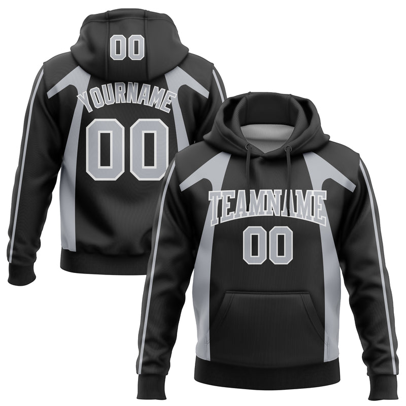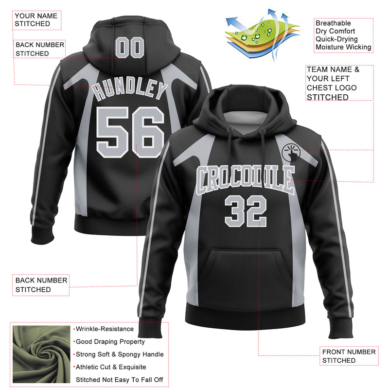 Custom Stitched Black Gray-White 3D Pattern Design Segmentation Patchwork Stripe Sports Pullover Sweatshirt Hoodie