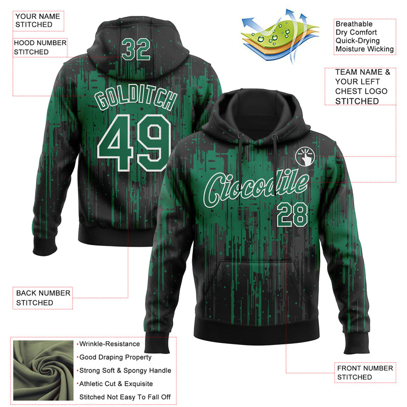Custom Stitched Black Kelly Green-White Dripping Splatter Sports Pullover Sweatshirt Hoodie