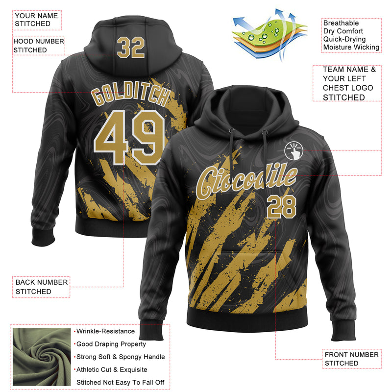 Custom Stitched Black Old Gold-White Splash Sports Pullover Sweatshirt Hoodie
