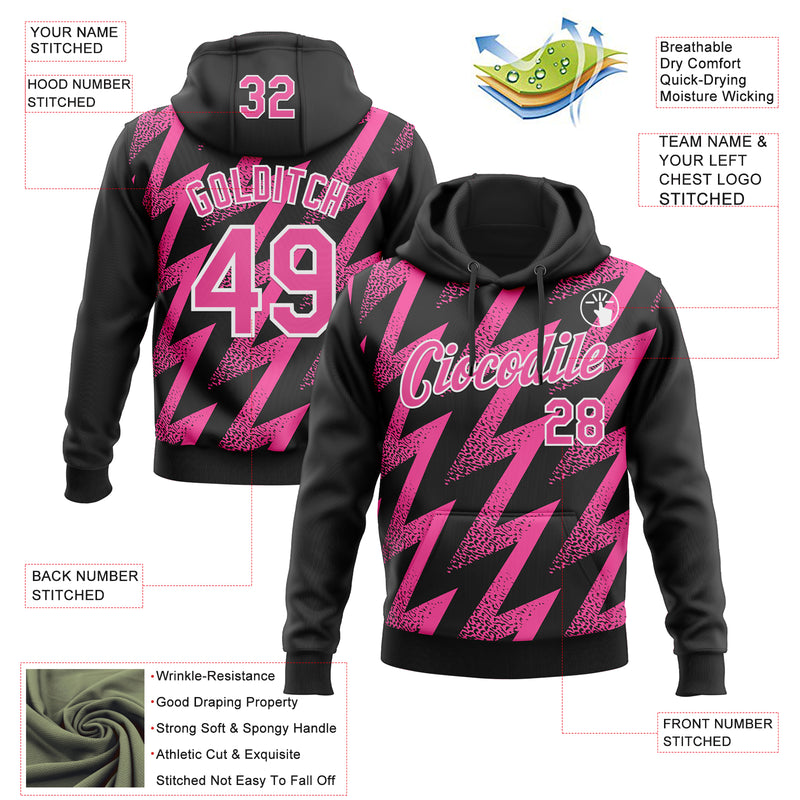 Custom Stitched Black Pink-White Zigzag Shape Sports Pullover Sweatshirt Hoodie