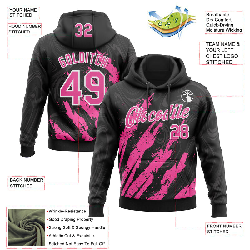 Custom Stitched Black Pink-White Splash Sports Pullover Sweatshirt Hoodie