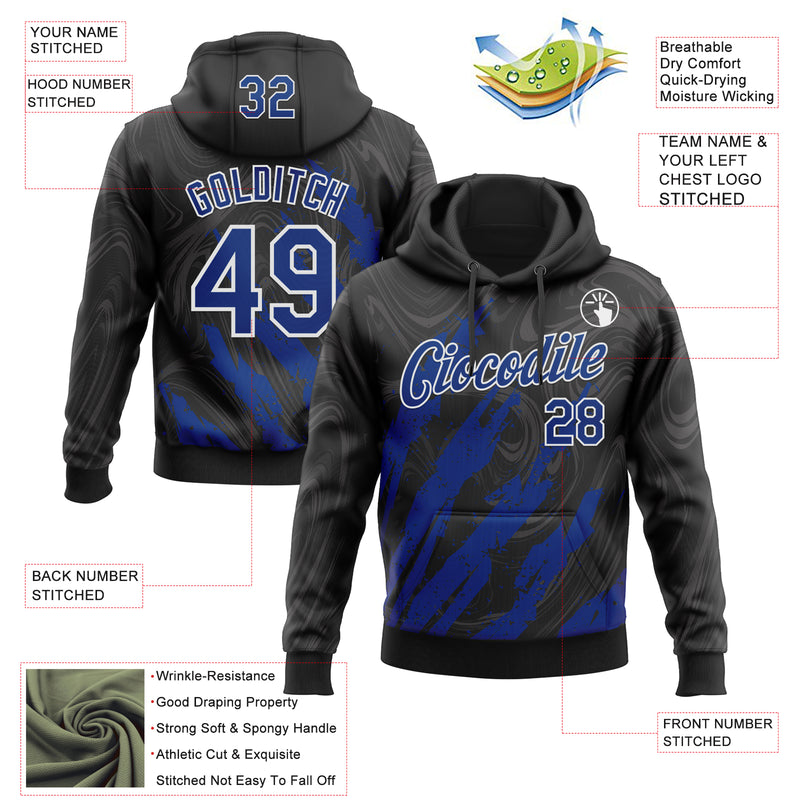 Custom Stitched Black Royal-White Splash Sports Pullover Sweatshirt Hoodie