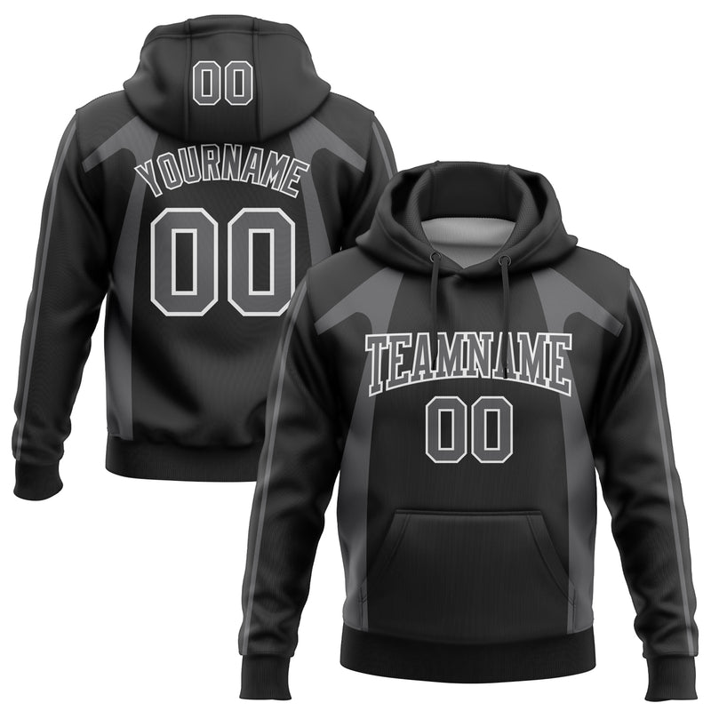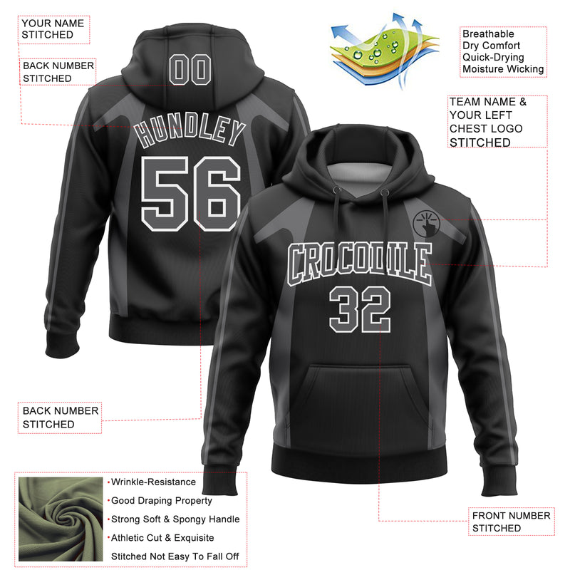 Custom Stitched Black Steel Gray-White 3D Pattern Design Segmentation Patchwork Stripe Sports Pullover Sweatshirt Hoodie