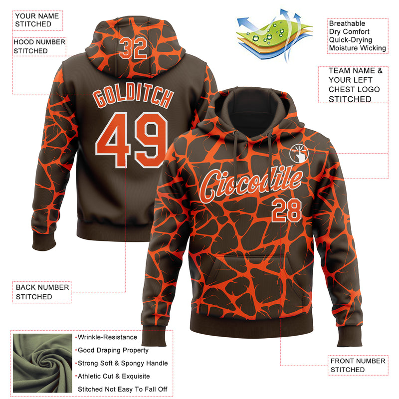 Custom Stitched Brown Orange-White Abstract Network Pattern Sports Pullover Sweatshirt Hoodie