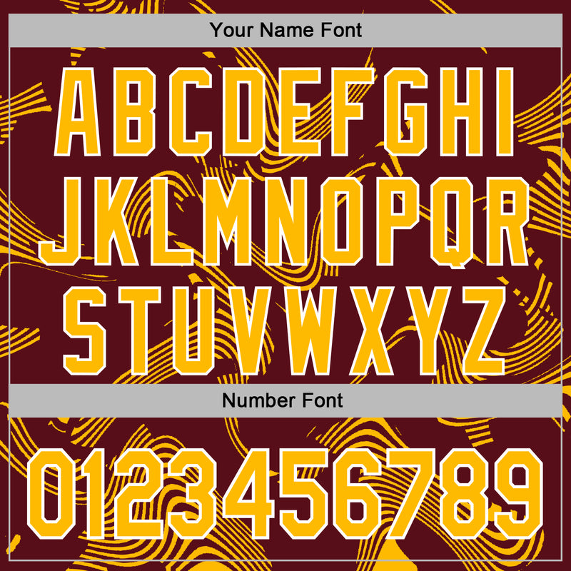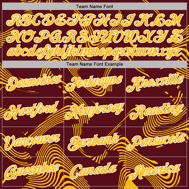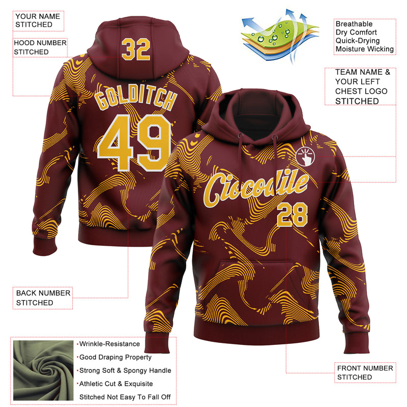 Custom Stitched Burgundy Gold-White Curve Lines Sports Pullover Sweatshirt Hoodie