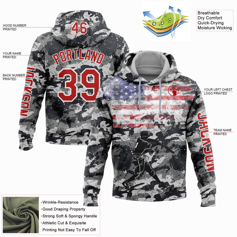 Custom Camo Red-White 3D USA Flag Sports Pullover Sweatshirt Salute To Service Hoodie