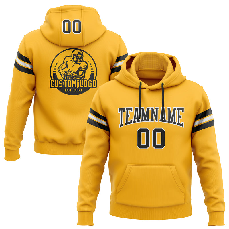 Custom Stitched Gold Black-White Football Pullover Sweatshirt Hoodie