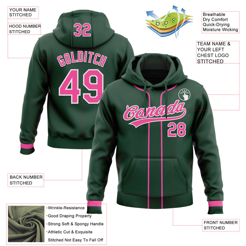 Custom Stitched Green Pink-White Baseball Pullover Sweatshirt Hoodie