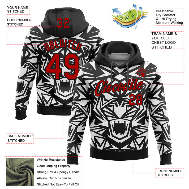 Custom Stitched Black Red-White 3D Pattern Design Geometric Shape Sports Pullover Sweatshirt Hoodie