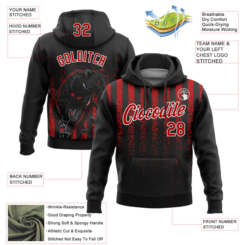 Custom Stitched Black Red-White 3D Pattern Design Animal Leopard Grunge Art Sports Pullover Sweatshirt Hoodie