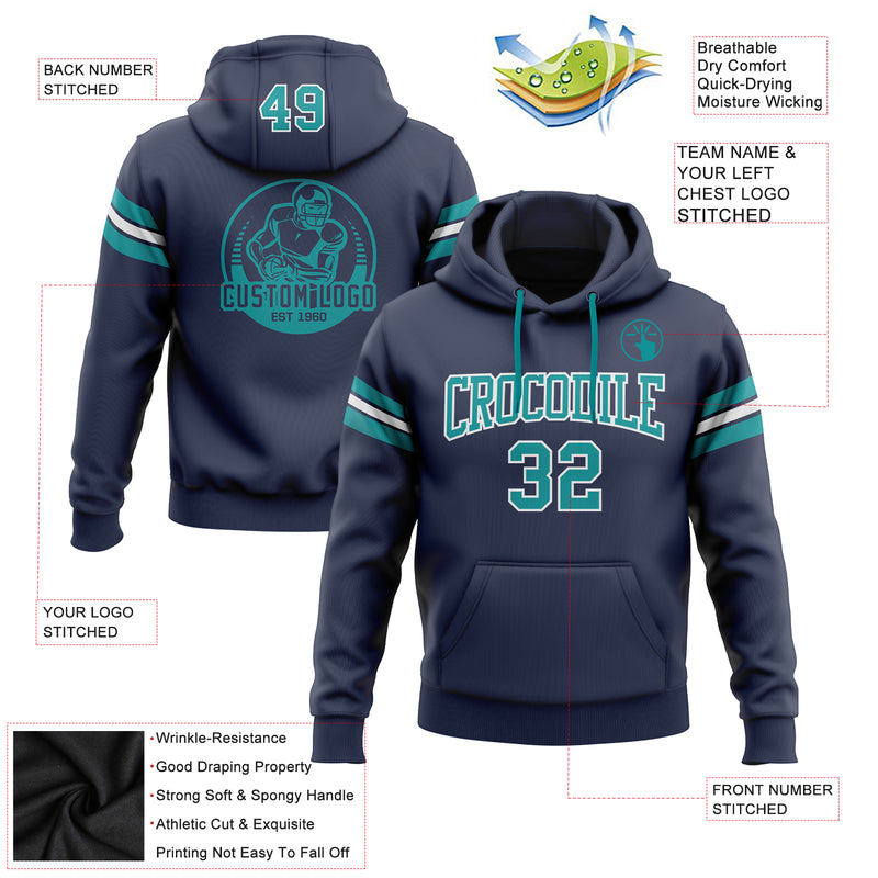 Custom Stitched Navy Teal-White Football Pullover Sweatshirt Hoodie