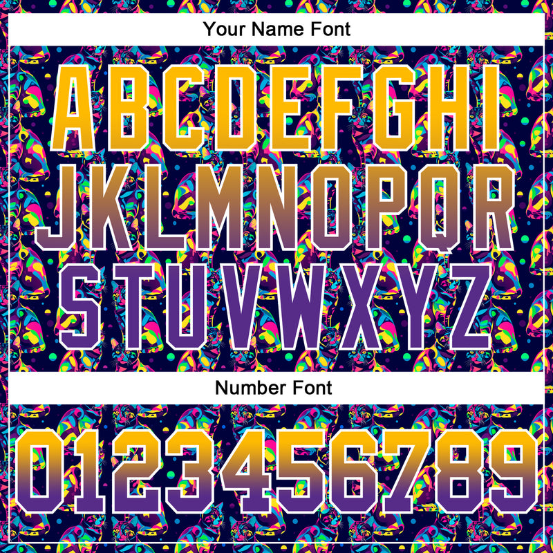 Custom Stitched Purple Gold-White Fade 3D Pattern Design Colorful Animal Cat Sports Pullover Sweatshirt Hoodie