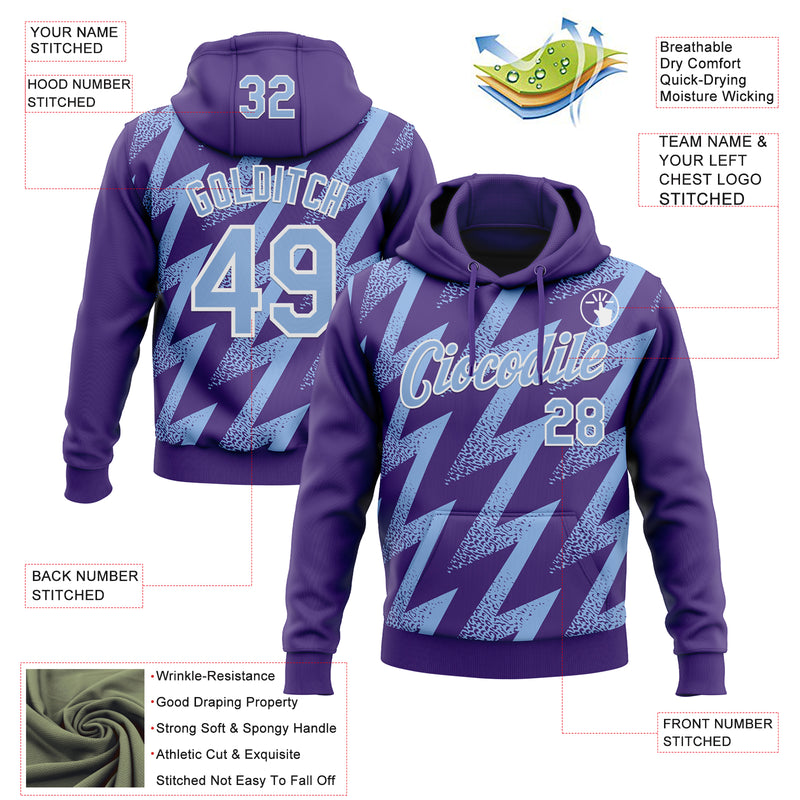 Custom Stitched Purple Light Blue-White Zigzag Shape Sports Pullover Sweatshirt Hoodie
