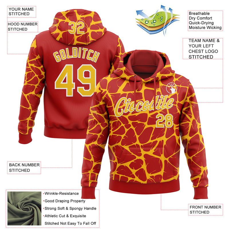 Custom Stitched Red Gold-White Abstract Network Pattern Sports Pullover Sweatshirt Hoodie