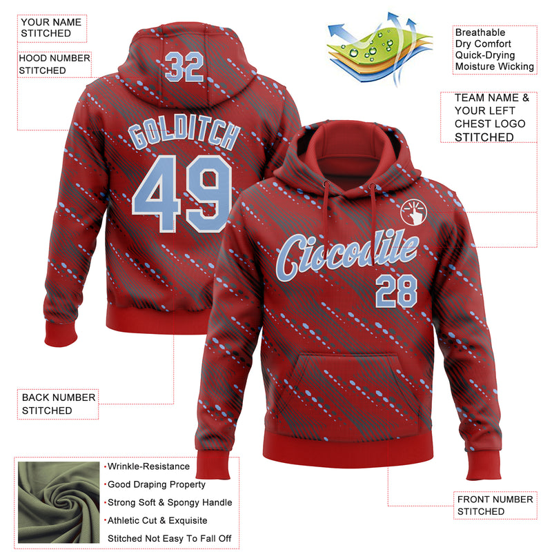 Custom Stitched Red Light Blue-White Slant Lines Sports Pullover Sweatshirt Hoodie