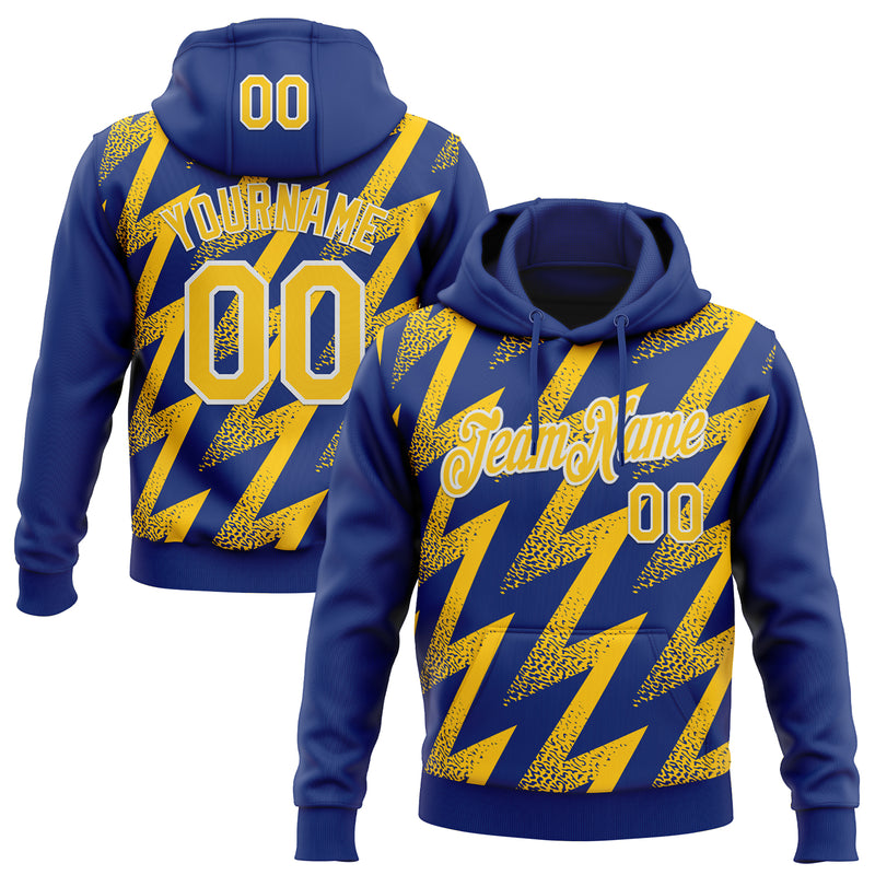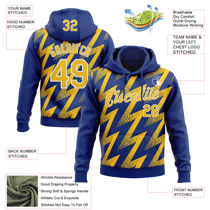 Custom Stitched Royal Yellow-White Zigzag Shape Sports Pullover Sweatshirt Hoodie