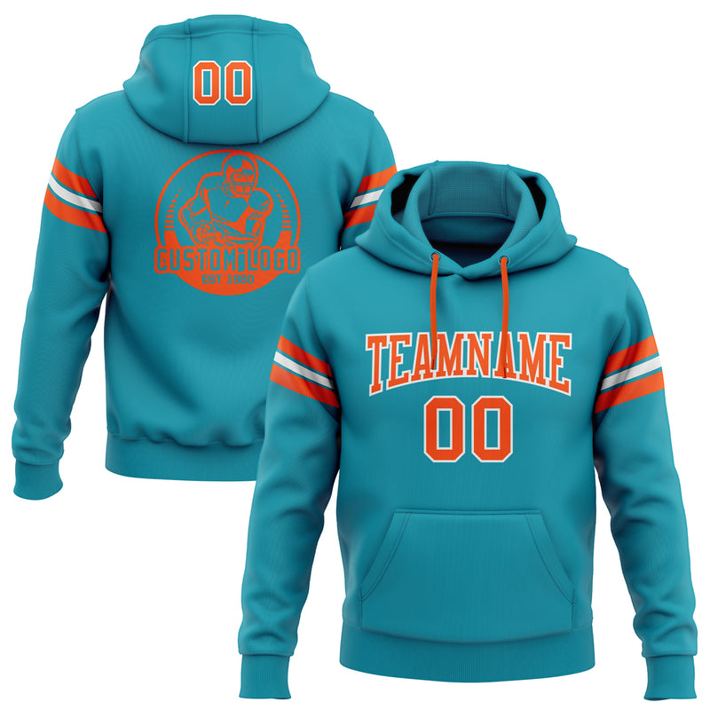 Custom Stitched Teal Orange-White Football Pullover Sweatshirt Hoodie