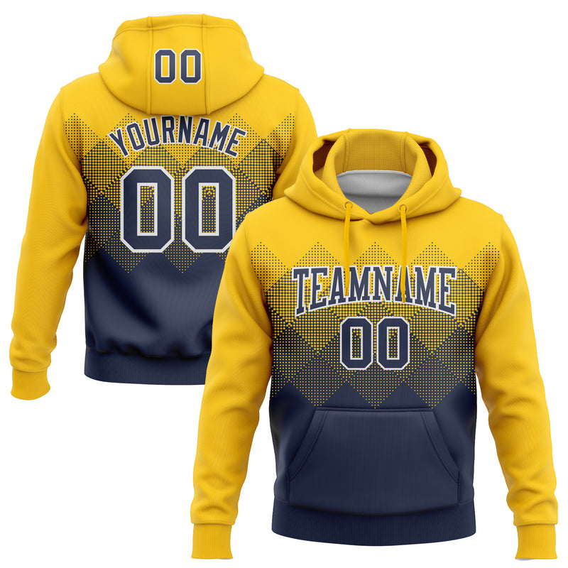 Custom Stitched Yellow Navy-White 3D Pattern Design Gradient Square Shape Sports Pullover Sweatshirt Hoodie