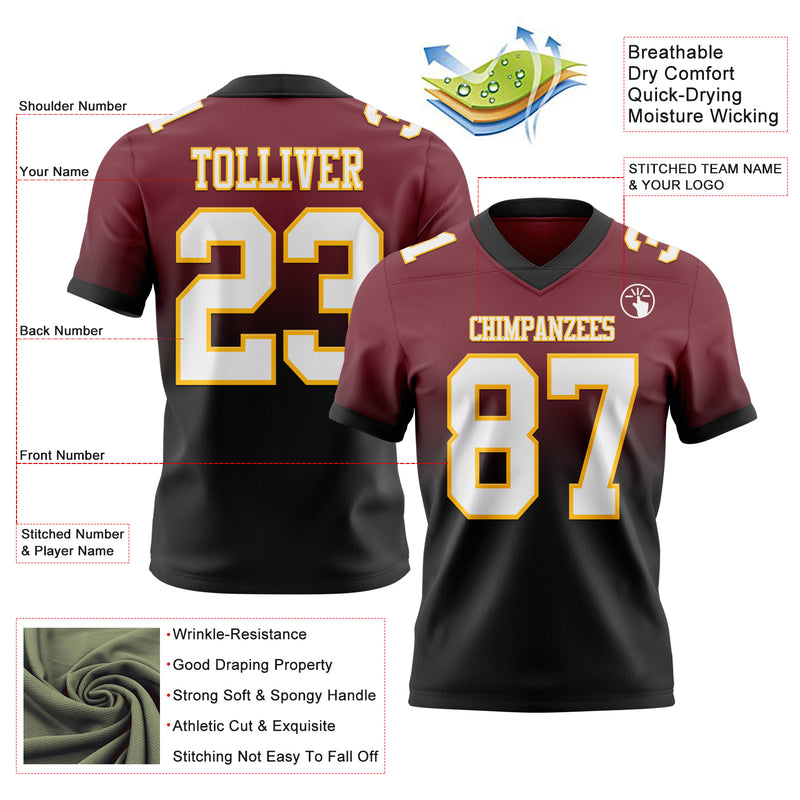 Custom Burgundy White Black-Gold Authentic Fade Fashion Football Jersey