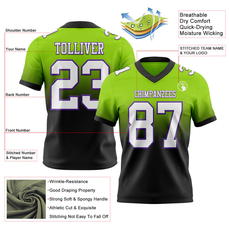 Custom Neon Green White Black-Purple Authentic Fade Fashion Football Jersey