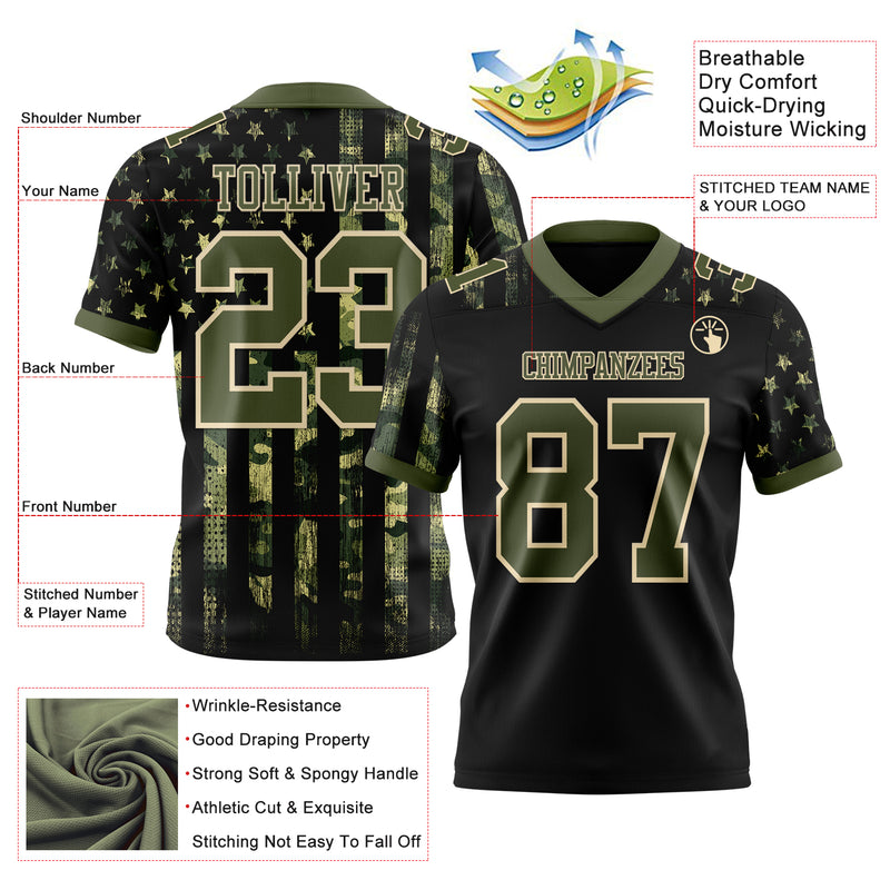 Custom Black Olive-Cream 3D Pattern American Flag Authentic Football Jersey