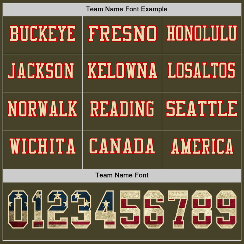 Custom Olive Vintage USA Flag Cream-Red Long Sleeve Salute To Service Authentic Football Jersey