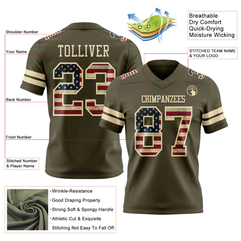 Custom Olive Vintage USA Flag-Cream Authentic Salute To Service Football Jersey