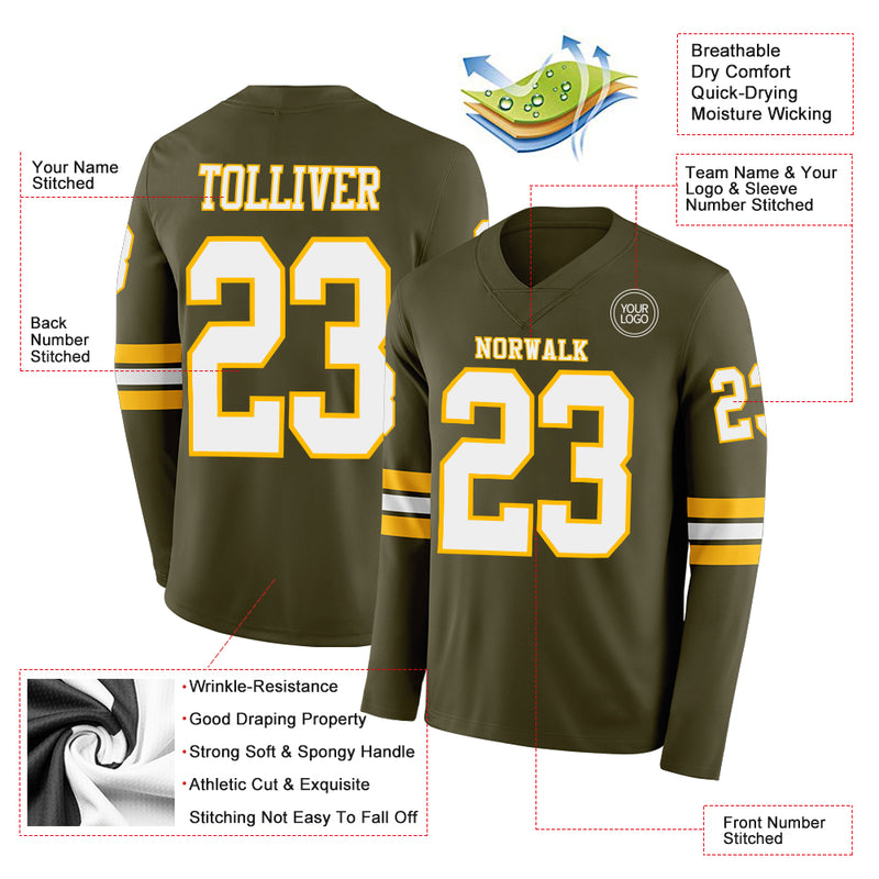 Custom Olive White-Gold Long Sleeve Salute To Service Authentic Football Jersey
