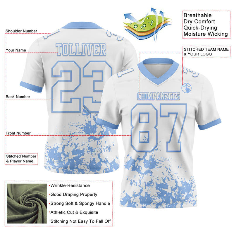 Custom White Light Blue 3D Pattern Splash Authentic Football Jersey