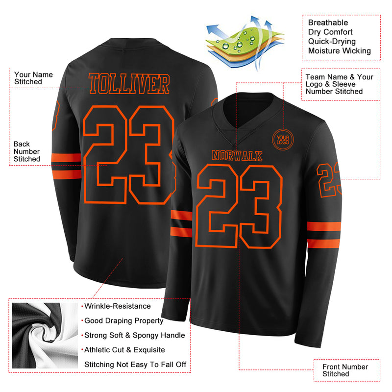 Custom Black Orange Long Sleeve Authentic Football Jersey