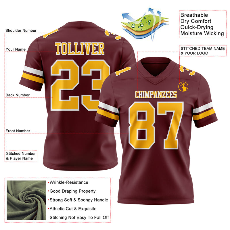Our custom football jersey allows you to create your own design, adding your name, team logo, or any special graphics that represent your team spirit. Made from high-quality materials, it offers exceptional comfort and durability, ensuring you perform at your best in your custom uniform.