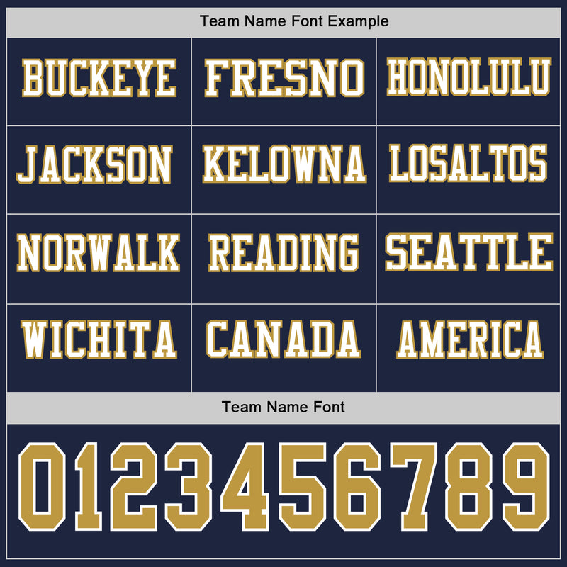 Custom Navy Old Gold-White Long Sleeve Authentic Football Jersey