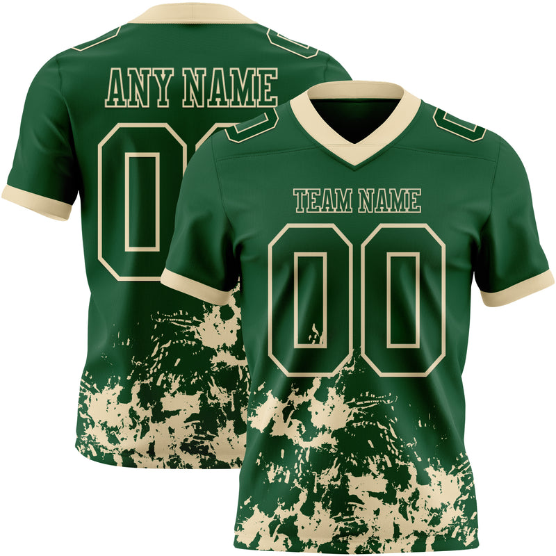 Custom Green Cream 3D Pattern Splash Authentic Football Jersey