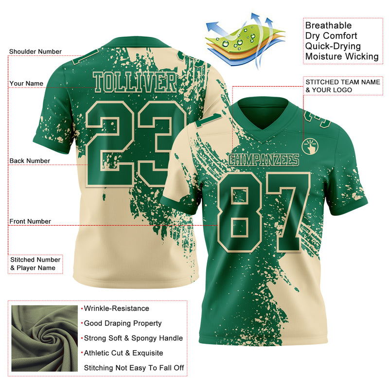 Custom Kelly Green Cream 3D Pattern Abstract Brush Stroke Authentic Football Jersey