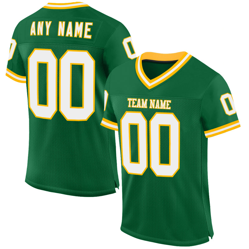 Custom Kelly Green White-Gold Mesh Authentic Throwback Football Jersey