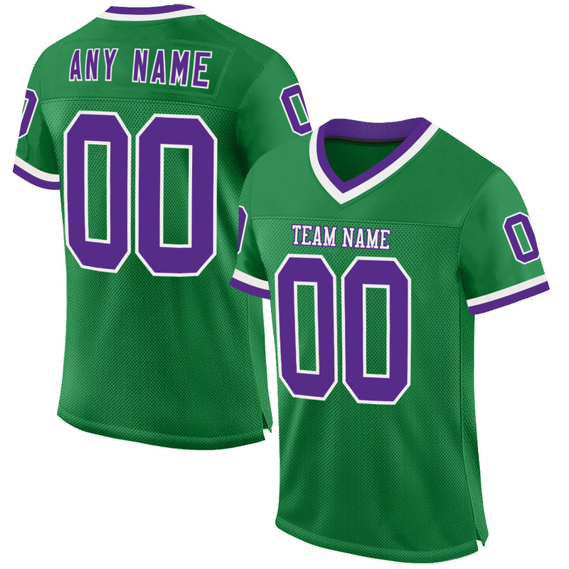 Custom Grass Green Purple-White Mesh Authentic Throwback Football Jersey