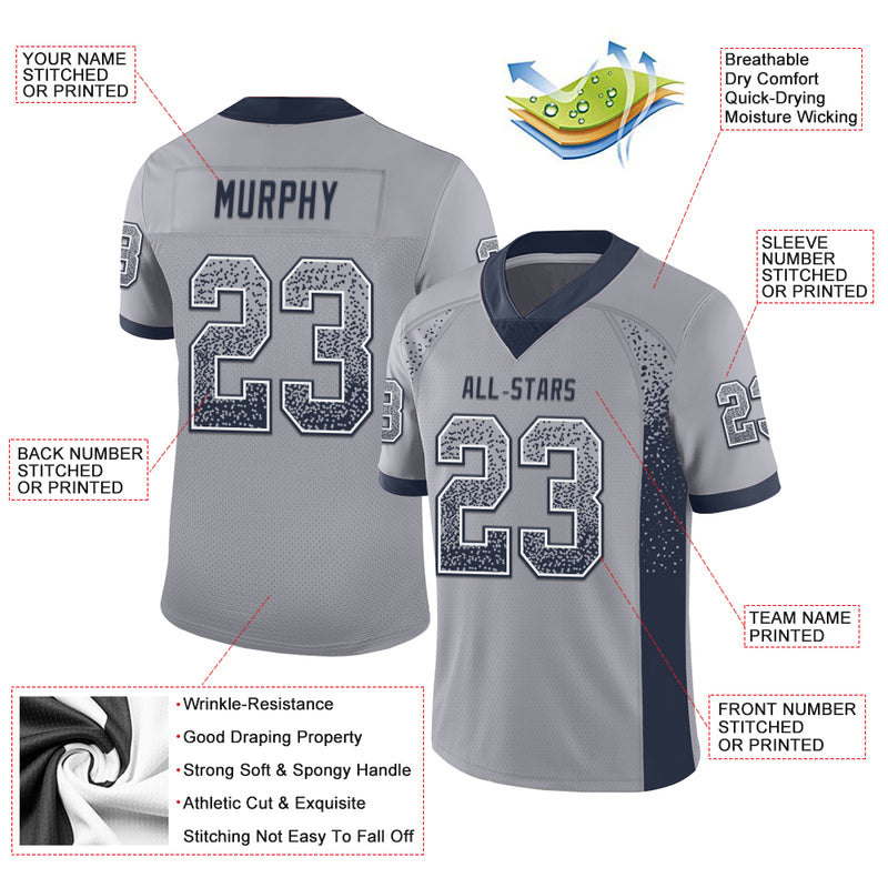 Custom Gray Navy-White Drift Fashion Football Jersey