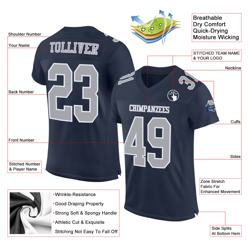 Custom Navy Gray-White Mesh Authentic Football Jersey