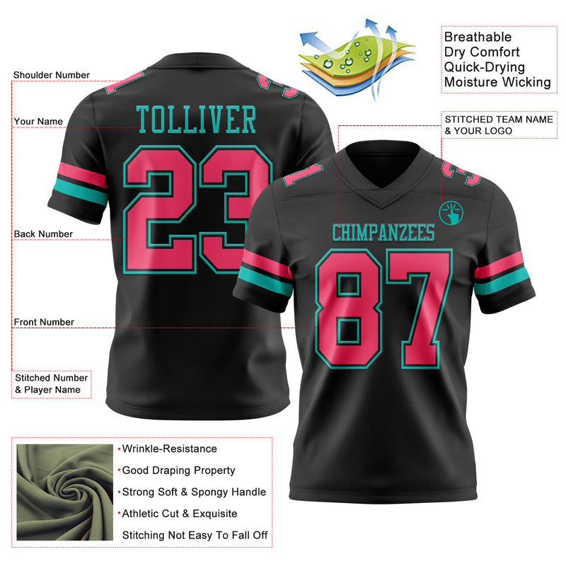 Custom Black Neon Pink-Aqua Authentic Football Jersey
