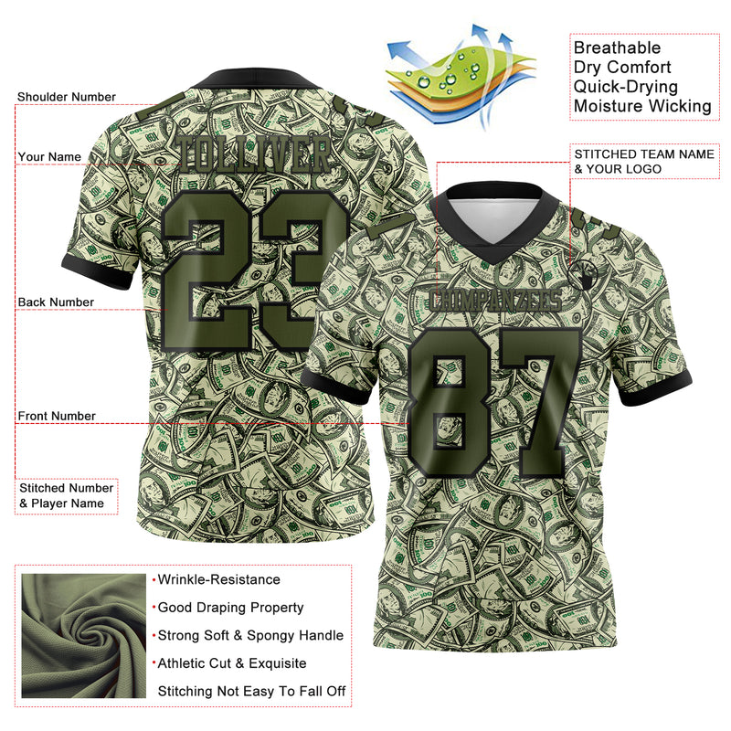 Custom Green Olive-Black 3D Pattern Dollar Authentic Football Jersey