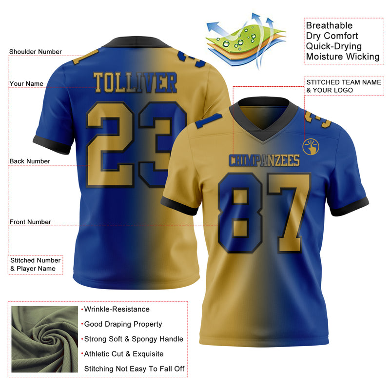 Custom Royal Old Gold-Black Authentic Gradient Fashion Football Jersey